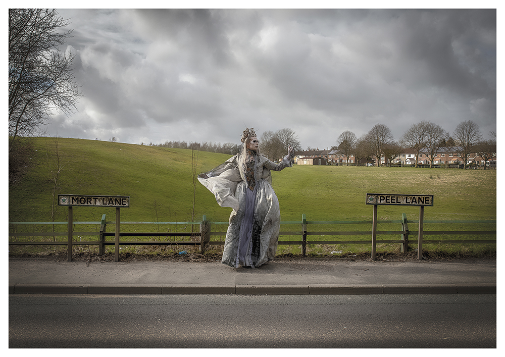 This fabulous project was commissioned for the You Belong Here (2021) exhibition with Salford Museum and Art Gallery, which was part of the wider Rediscovering Salford’s green spaces programme. Cheddar reached out to residents of Little Hutton, Salford to gather local memories, historic rumours and tales, utilising the art of drag to delve into the story of 18th century figure, Madam Mort (Catherine Mort) aka ‘the grey lady’ or ‘white lady’ – in this present day is said to haunt the local woodland in this area as a ghostly spirit.